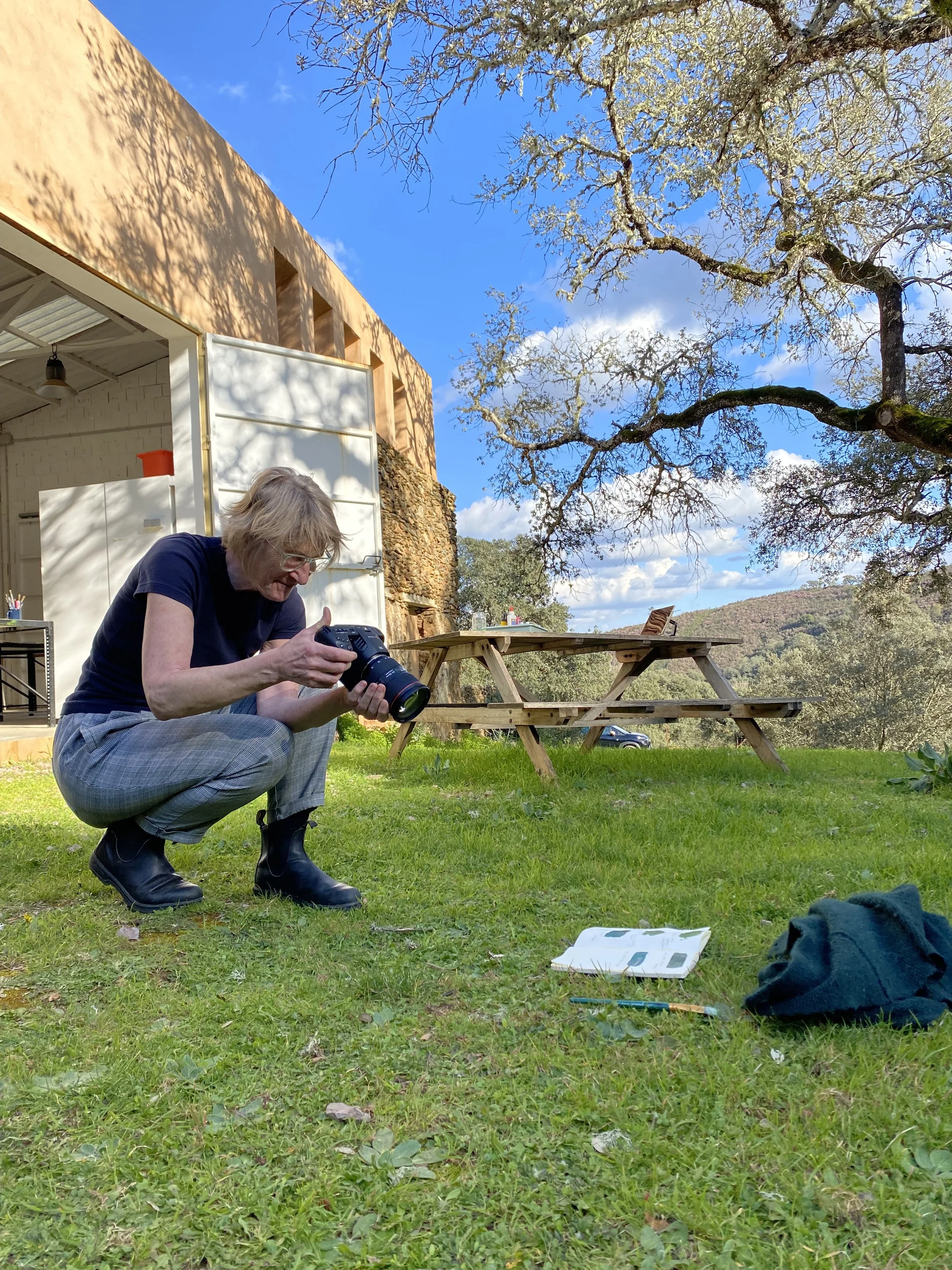 Foto: Margreet Kramer aan het werk bij Artist in Residence Arte Ventura in Spanje